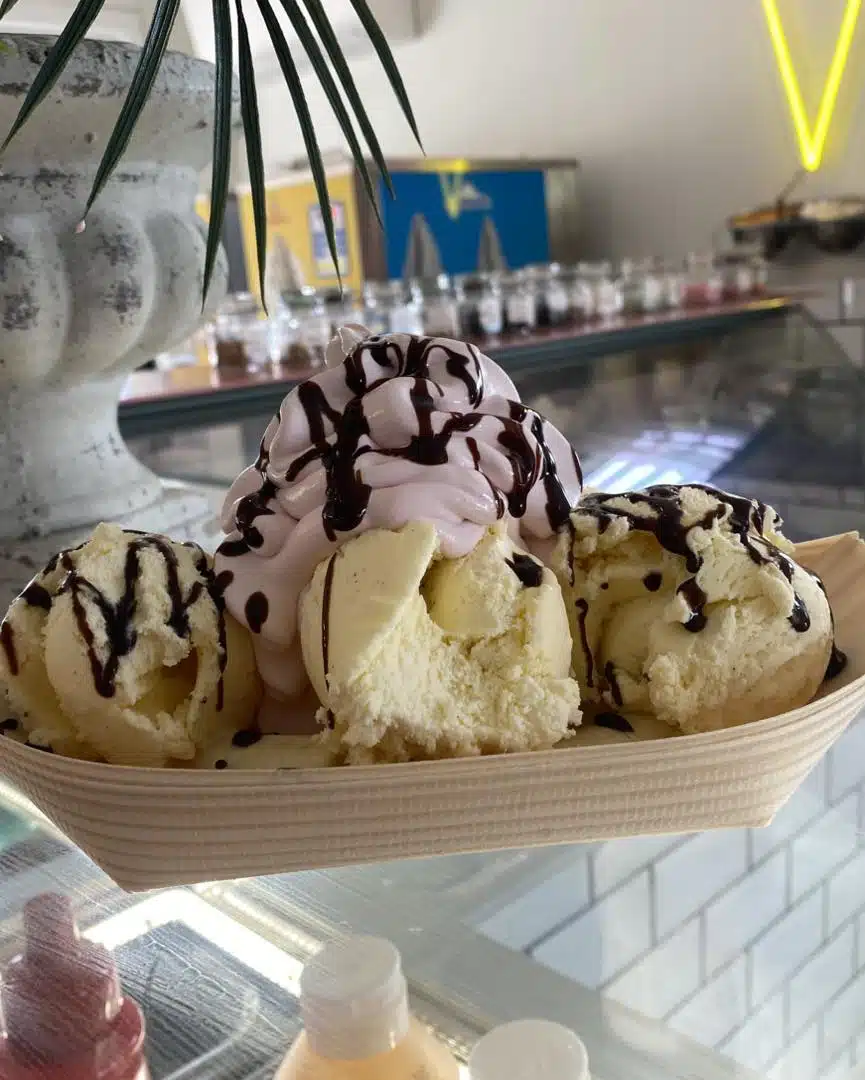 Vår berømte rosa og hvite softis med friske bær og blåbærsaus er viden kjent, men det er ikke det eneste digge vi kan by på. Her hos ISI Bar serverer vi alt fra kuleis og shakes til banansplit og vaffel med friske bær. For å ikke glemme vår legendariske bæggis!